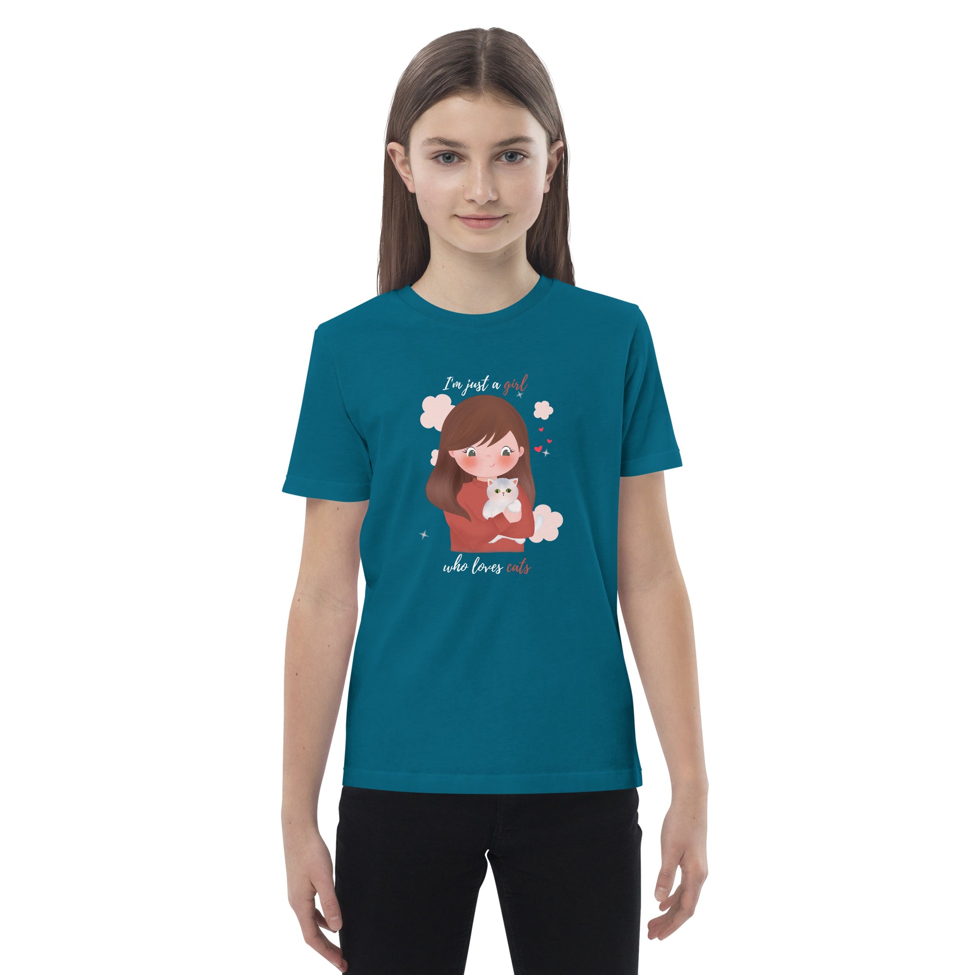 Organic cotton kids t-shirt - I'm just a girl who loves cats - Maroon
