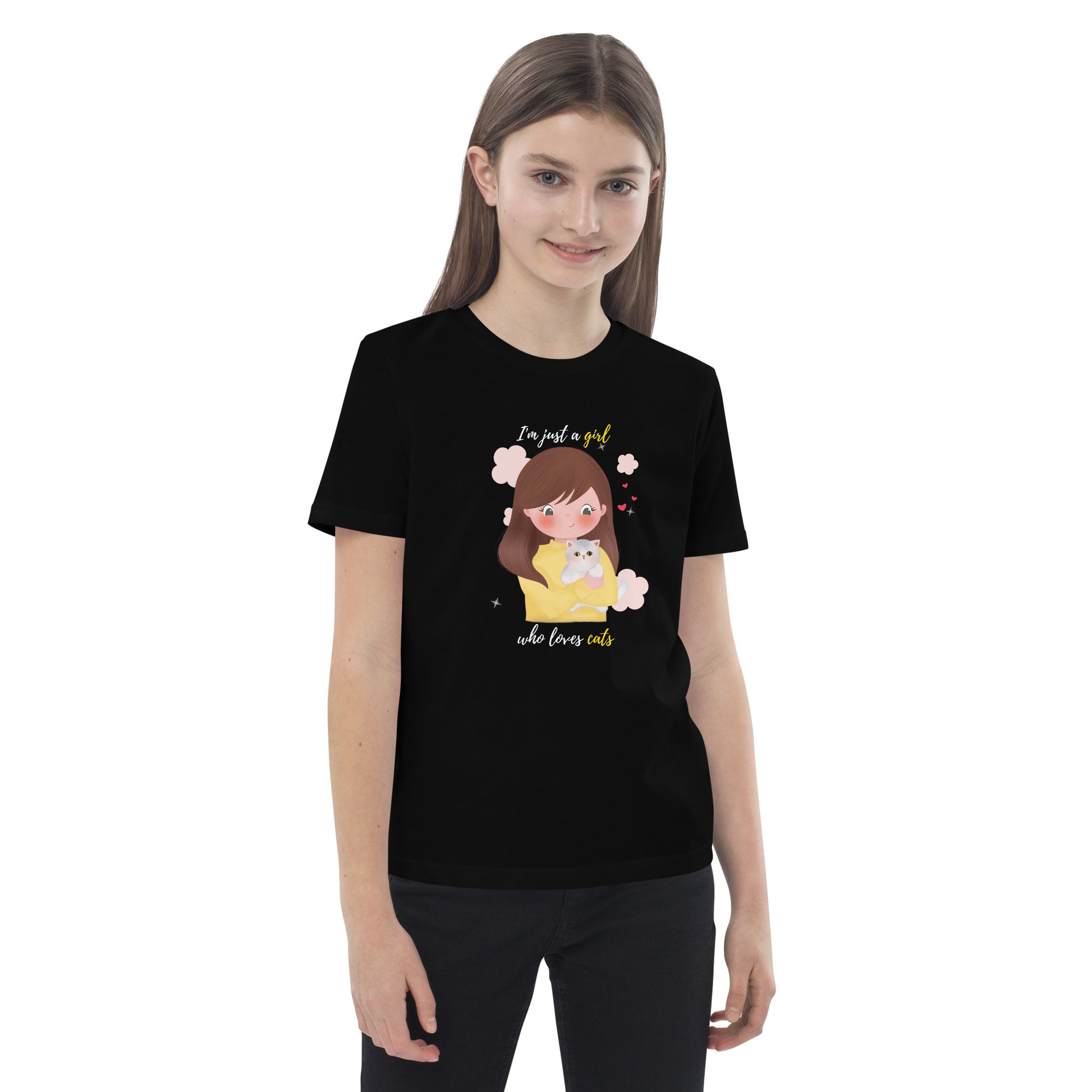 Organic cotton kids t-shirt - I'm just a girl who loves cats - Yellow